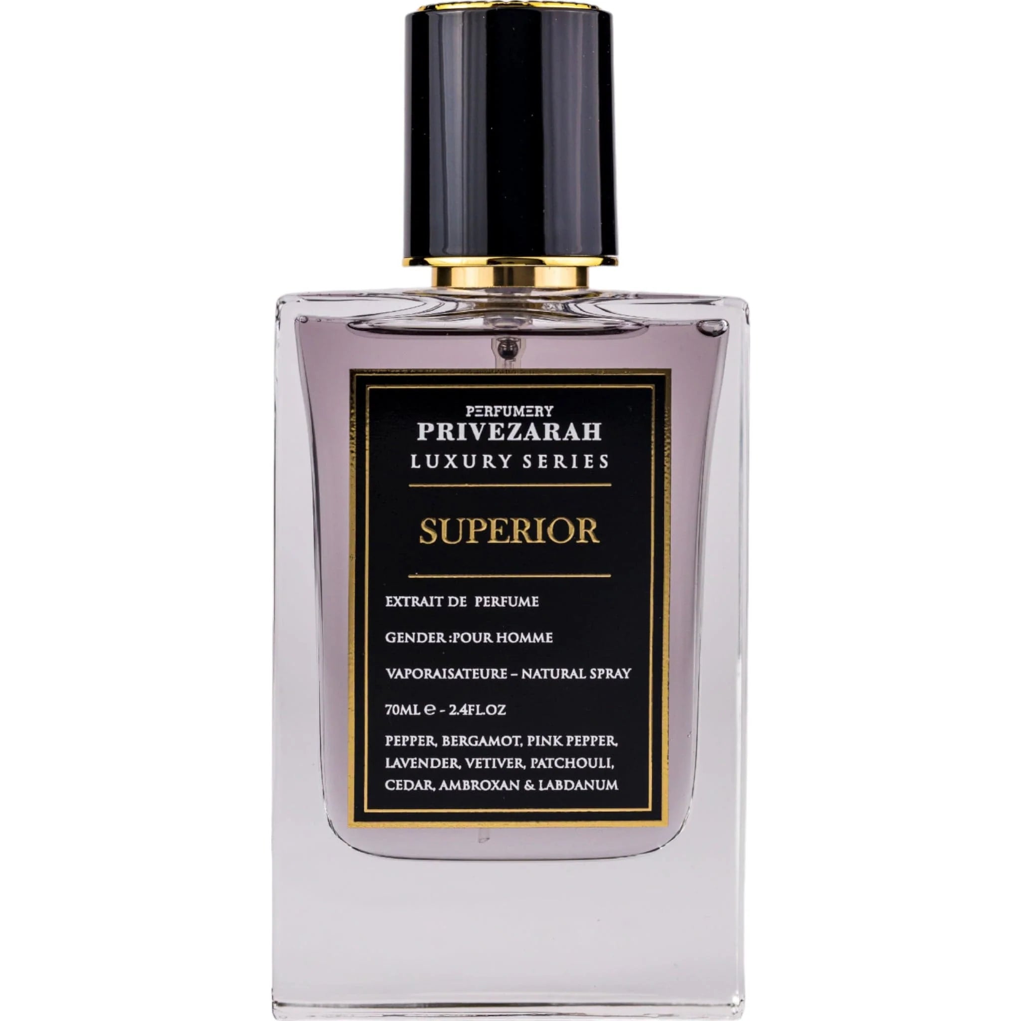 Aroma sa remarcabila il face o alegere versatila si atragatoare. Superior Privezarah Extrait de Parfum pentru barbati se evidentiaza ca un parfum unic si irezistibil de taios.